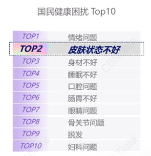 1、2021年,皮肤状态不好位列国民健康困扰第二位。