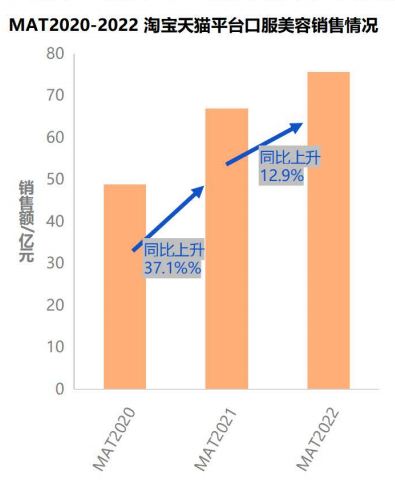 2、MAT2022口服美容整体销售额超70亿元,同比上升12.9%。